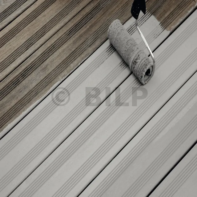 • Exotisch lasiert oder fettig : Lassen Sie das Holz 6 Monate lang abwittern (12 Monate für Iroko, Azobe oder Padouk), bevor Sie es mit SOLID COLOR STAIN MAT behandeln.