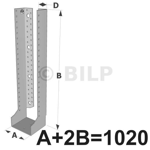 Große Balkenschuhe mit innenliegenden Schenkeln, Baureihe GLI ECONOMIC (1020 mm Breite, 2,5 mm Dicke, 90 mm Tiefe) - Réf. GLI1020/2.5X