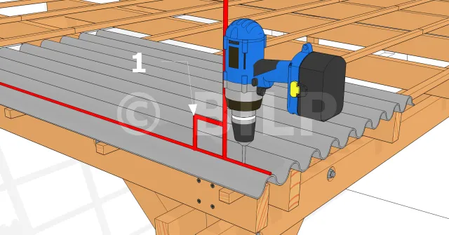 Die Art und Weise, wie eine Platte gebohrt wird, ist wichtig. Tatsächlich könnte ein falsches Manöver zum Versickern von Regenwasser führen. Die Platte muss mindestens an zwei Dachsparren befestigt werden. Die Vorbohrungen werden auf der Höhe dieser Sparren durchgeführt. Verwenden Sie einen Bohrer, um die Löcher in die Platten zu bohren. Platzieren Sie den Bohrer senkrecht zur Platte, um ein Brechen des Bohrers zu verhindern. Die Vorbohrungen müssen die gleiche Größe wie die Sechskant-Holzschrauben haben.