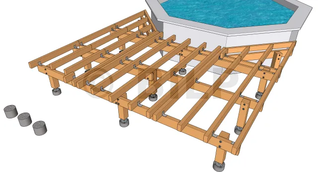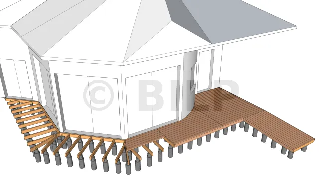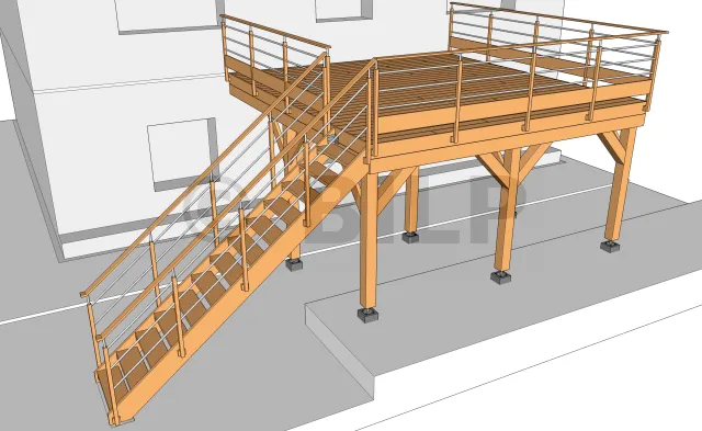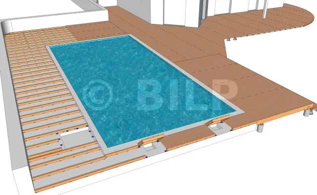 Wenn Sie daran interessiert sind, Ihre eigene Holzterrasse zu entwerfen, stellen wir Ihnen eine Bibliothek mit konfigurierbaren Komponenten zur Verfügung, die Sie herunterladen können. Hier sind 3 Beispiele unter vielen anderen unserer Komponenten, die vorhanden sind: