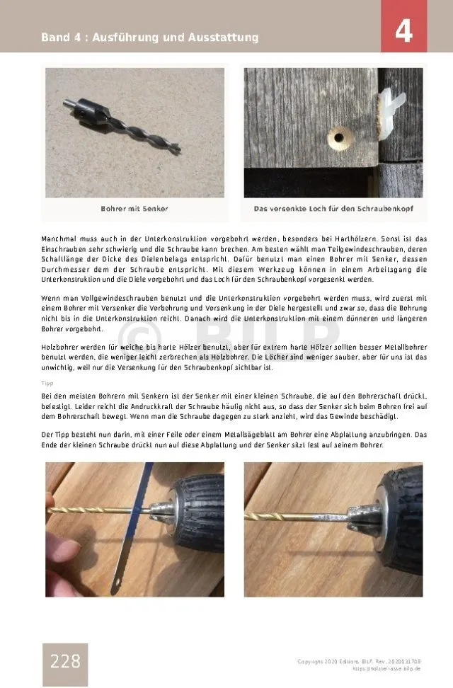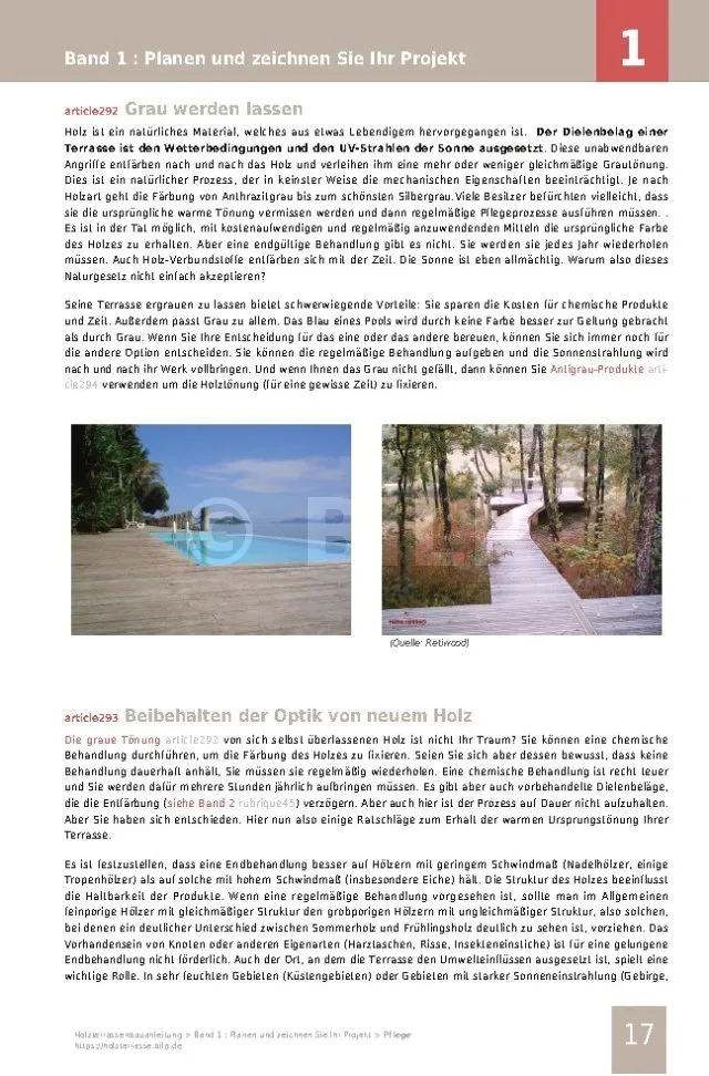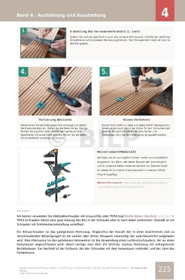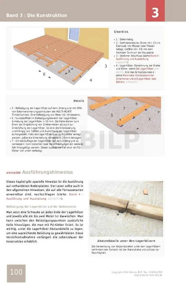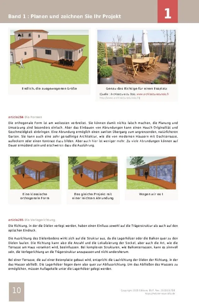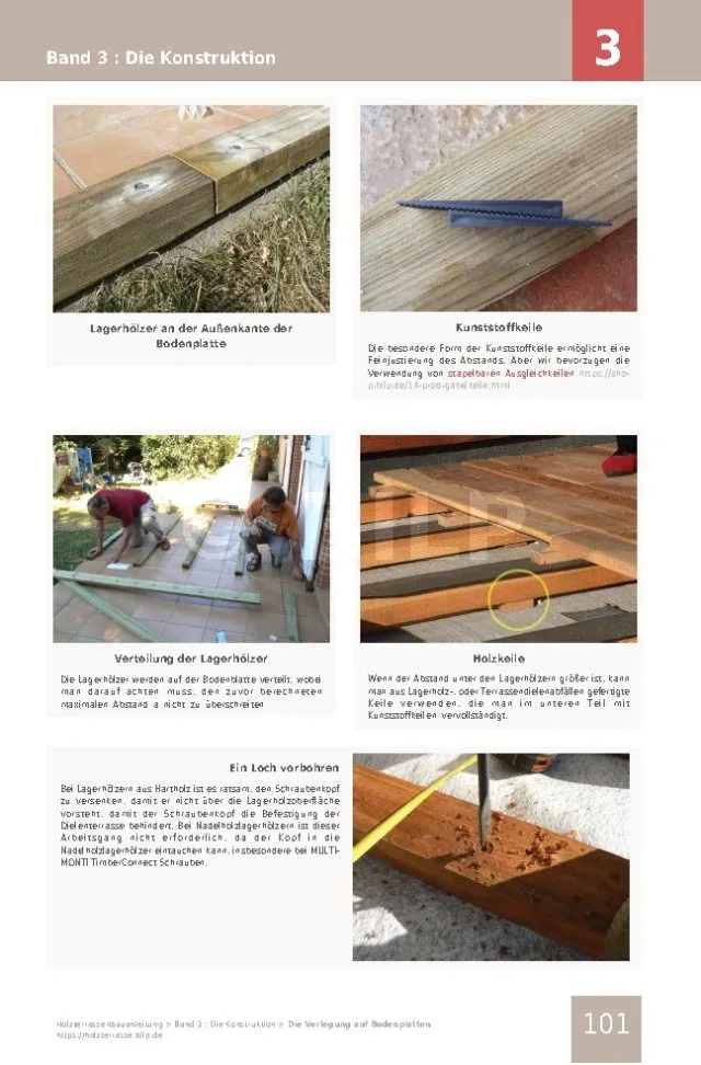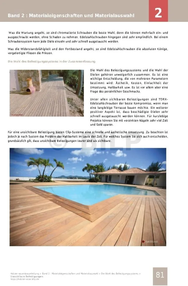 - Auswahl der richtigen Materialien, Terrassendielen, Lagerhölzer, Befestigungsmittel usw. ;