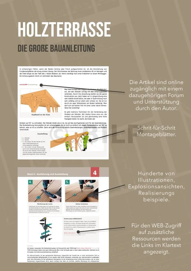 konkrete Informationen für Ihr Projekt. Alle Geheimnisse, Tipps und Tricks, um Ihre Terrasse zu einem Erfolg zu machen. Alle Techniken und Produkte werden Ihnen in objektiver und unabhängiger Weise beschrieben. Detaillierte Ansichten beschreiben alle Bauphasen.