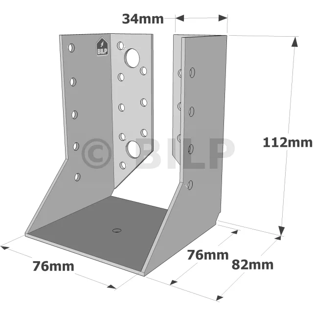 Zwischen der Dicke des Holzes und der Breite des Balkenschuhs ist eine Toleranz von maximal 2 mm zulässig. Beispiel : Ein auf 76 mm gebogener Balkenschuh kann eine Holzstärke von 74 mm tragen.
