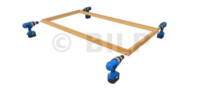 - Placer un long panneau de bois suivant le diagonal du cadre.