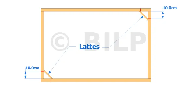 Noter qu’il est possible de fixer les lattes par l’extérieur en les alignant sur les faces des lambourdes (c’est-à-dire appliquer les lattes à la surface des lambourdes) ou bien à l’intérieur du cadre comme présenté dans cette description.