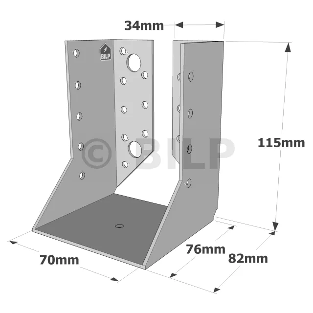 Zwischen der Dicke des Holzes und der Breite des Balkenschuhs ist eine Toleranz von maximal 2 mm zulässig. Beispiel : Ein auf 76 mm gebogener Balkenschuh kann eine Holzstärke von 74 mm tragen.
