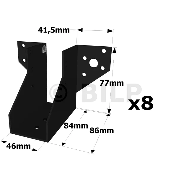 Balkenschuh mit außenliegenden Schenkeln - SAE-Sortiment SCHWARZES Finish (Dicke 2mm, Tiefe 84mm) - Réf. SAE200/46/2PB_8