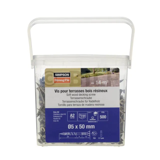 Schraube für Terrassendielen aus Holz, Doppelgewinde, Edelstahl A2, D5 L50 - Réf. SV5.0X50L500A2