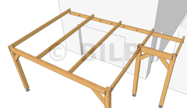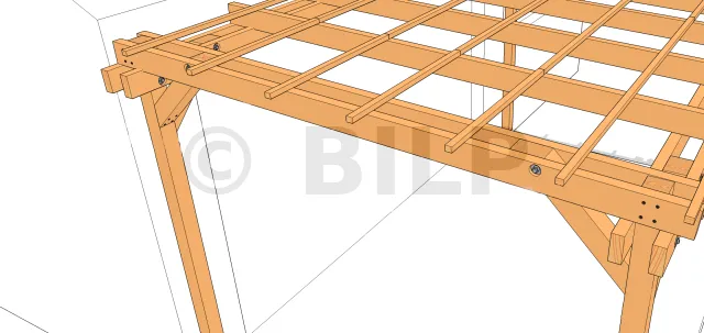 - Befestigung von Weichholzlatten an Weichholzbalken.