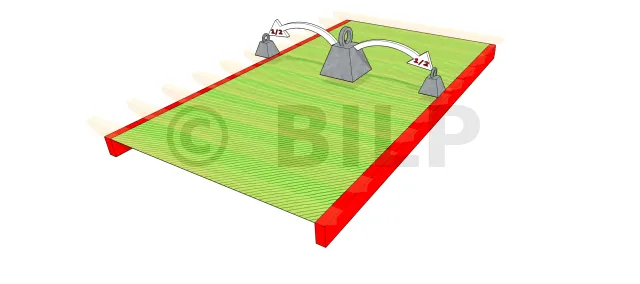 Im Falle eines verschimmelten Balkens bleibt das Berechnungsprinzip dasselbe, außer dass die Breite des Querschnitts nur durch 2 geteilt wird : Breite eines einzelnen Balkens = 2 x Breite eines verzangten Balkenelements.