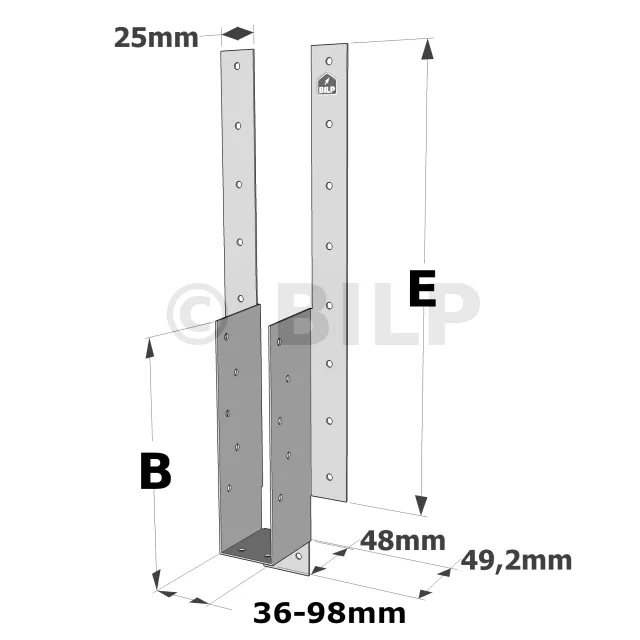 - Gefaltete Flügel zur Höhenverstellung des Schuhs im Verhältnis zum Stützelement. Nageln Sie die gefalteten Flügel fest.