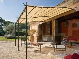 Es ist vorzuziehen, Hängeklammern an der Struktur anzubringen. Zum einen, um eine Beschädigung der Struktur durch Reibung zu vermeiden. Auf der anderen Seite, um die Demontage des Segeltuchs zu erleichtern.