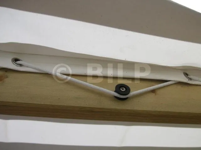 Einer der Vorteile der Befestigung mit Bungee-Seilen besteht darin, dass sie die mechanische Beanspruchung des Segeltuchs durch den Wind begrenzt. Tatsächlich wird ein Teil der Windenergie von den Bungee-Seilen absorbiert. Die Bungee-Seile ermöglichen es, Dimensionsschwankungen aufgrund von Feuchtigkeit und Hitze aufzufangen.