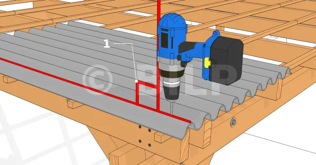 Die Art und Weise, wie eine Platte gebohrt wird, ist wichtig. Tatsächlich könnte ein falsches Manöver zum Versickern von Regenwasser führen. Die Platte muss mindestens an zwei Dachsparren befestigt werden. Die Vorbohrungen werden auf der Höhe dieser Sparren durchgeführt. Verwenden Sie einen Bohrer, um die Löcher in die Platten zu bohren. Platzieren Sie den Bohrer senkrecht zur Platte, um ein Brechen des Bohrers zu verhindern. Die Vorbohrungen müssen die gleiche Größe wie die Sechskant-Holzschrauben haben.
