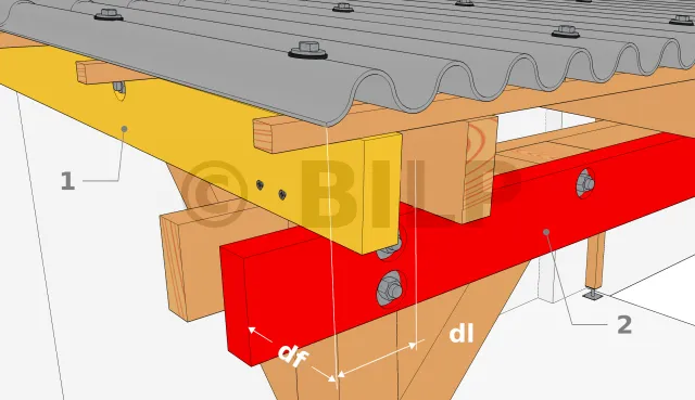 Vor dem Einbau der Wellplatten ist es wichtig, das Gerüst (Pfette + Sparren) vorzubereiten. Denn selbst wenn der Rahmen sehr einfach ist, müssen seine Elemente gut befestigt und parallel zueinander, also in gleichem Abstand, angeordnet sein. Abhängig von ihrer Länge müssen die Wellplatten auf mindestens zwei Sparren befestigt werden, immer in Längsrichtung. Der maximal verbleibende Abstand zwischen zwei Sparren darf den vom Lieferanten beschriebenen Abstand nicht überschreiten. Wenn der Abstand zwischen den Sparren zu groß ist, müssen Sie einen weiteren Sparren hinzufügen. Selbstverständlich werden alle Berechnungen lange vor der Anlage durchgeführt.