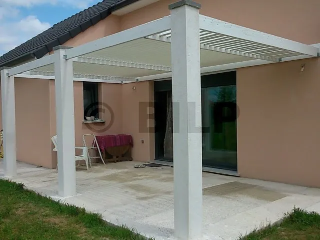 Bei einer Pergola kann das Dach mit horizontalen Paneelen mit verstellbaren Lamellen abgedeckt werden. Diese wird heute als bioklimatische Pergola bezeichnet. Die Lamellen können so ausgerichtet werden, um die Vorteile der Sonne voll auszunutzen. Zu anderen Zeiten kann sie so konfiguriert werden, dass sie ganz oder teilweise Schatten erzeugt. Wir können uns auch vor dem Regen schützen.