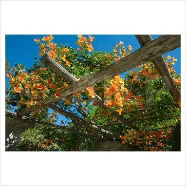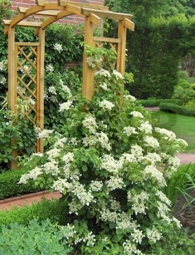 - Es ist auch möglich, einjährige Kletterpflanzen (Glockenrebe, Platterbse, Feuerbohne, Prunkwinde, Kapuzinerkresse, Thunbergia oder Schwarzaugige Susanne...) mit immergrünen Pflanzen zu mischen. So können Sie die Szene je nach Lust und Laune von einem Jahr zum nächsten wechseln.