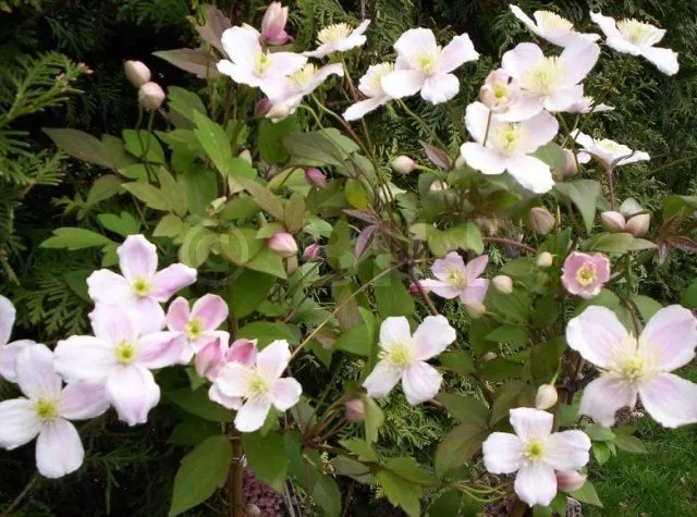 - Anstatt zu versuchen, zu viele verschiedene Arten zu mischen, ist es oft einfacher und weniger riskant, verschiedene Sorten der gleichen Art zu mischen (verschiedene Rosen, verschiedene Clematis, verschiedene Glyzinien...).