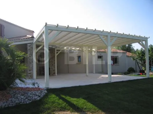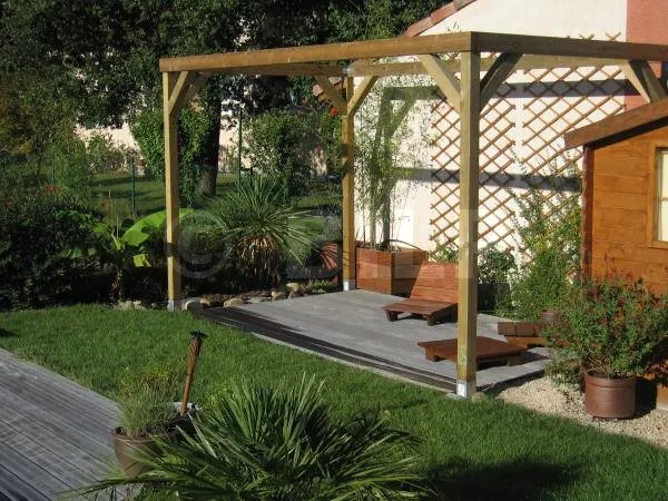 Je nachdem, ob Sie die vier Pfosten für die Pergola vor dem Gebäude aufstellen möchten oder ob Sie wegen des unpraktischen Materials der Fassade keine Wahl haben, gelten für Sie die gleichen Prinzipien der ästhetischen Kohärenz wie bei einer Anlehn-Pergola : Farbe der Fassade, Material und Farbe der Pergola.