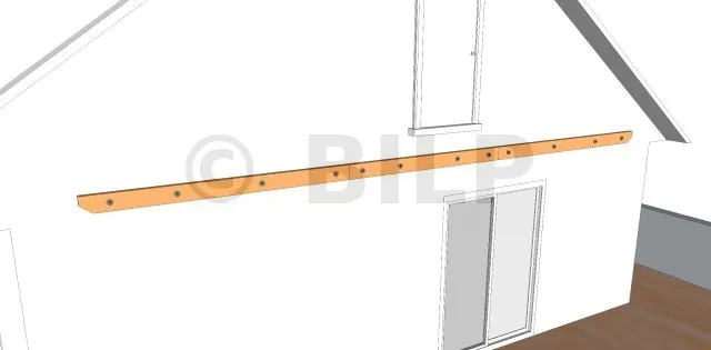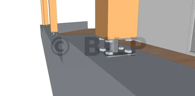 Im Falle des Wandbalkens wird er mit Gewindestangen und Dichtungsrohren an den Hausringanker befestigt. Diese Druckdichtungsrohre sorgen für eine starre Abstützung der Pfette gegen das Gewicht des Sparrendachs.