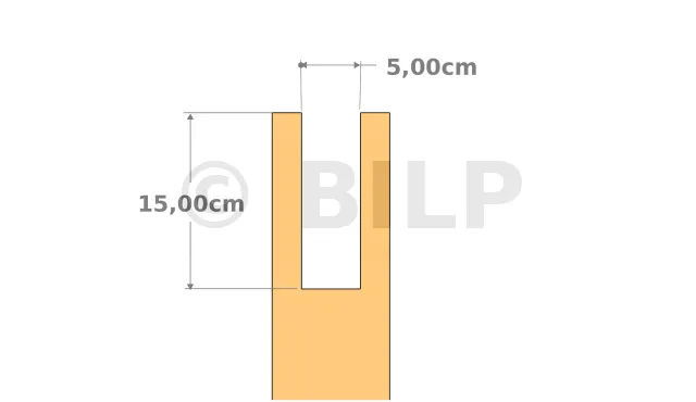 Das Ende jedes Pfostens wird abgeschnitten, um eine Kerbe von 5 x 15 cm Querschnitt zu erhalten.
