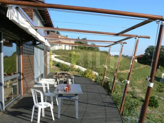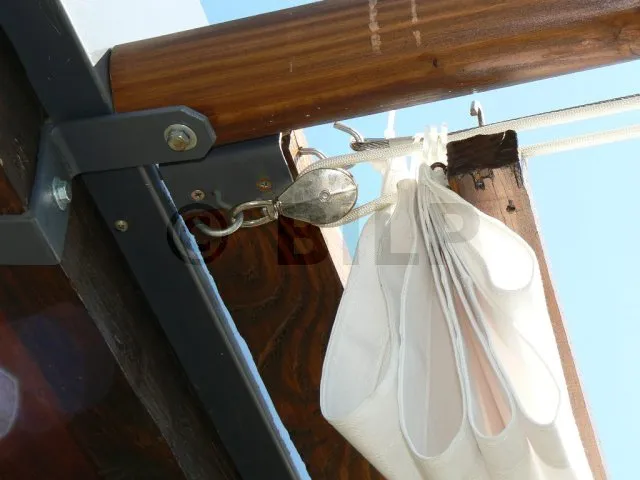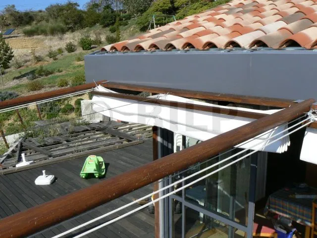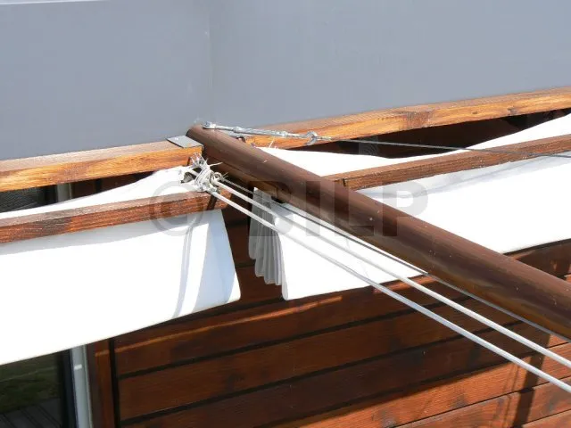 Es gibt drei Edelstahlseile pro Segeltuch, was einem Durchschnitt von 1,20 m zwischen den Seilen entspricht.
