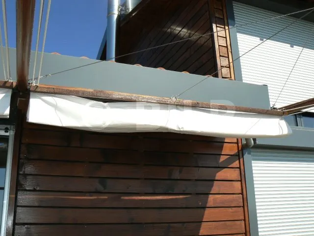 Das Gewebe kann von einem Dachüberstand weggefaltet oder durch eine Abdeckung geschützt werden. Dadurch wird verhindert, dass es sich mit Regenwasser füllt.