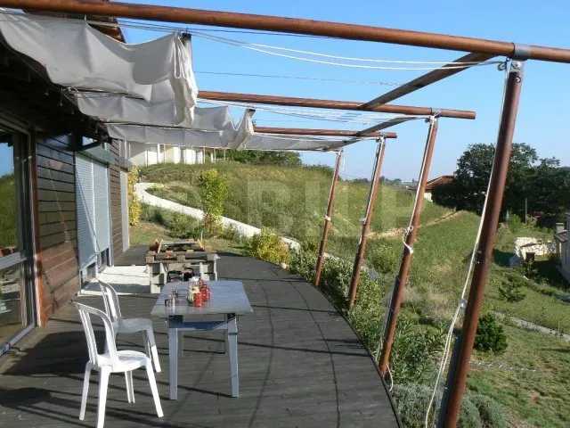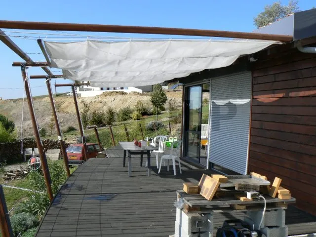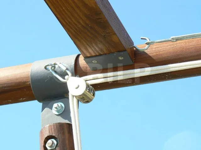 Die Struktur besteht aus Holzpfosten, kann aber mit verschiedenen Methoden hergestellt werden ; die Hauptsache ist, dass horizontale Kabel gespannt werden, die als Träger für die Segeltücher verwendet werden. Die Segeltücher sind in der Tat aufgehängt und nicht gespannt, was ihnen ein leicht schwebendes Aussehen verleiht.
